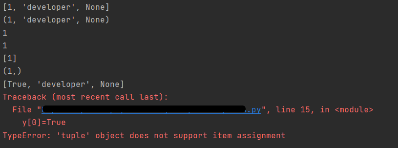# 튜플은 하나의 값만 가질경우는 자동으로 불가능하다. (y 예시 참고 - int 값인 것을 볼 수 있음 !)