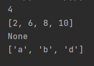 print(y.remove('c')) #remove는 반환하지 않음 'c'값을 삭제